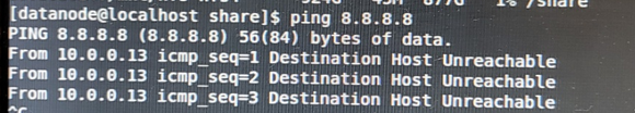 이는 'From 10.0.0.13' 에서 볼 수 있듯이 현재 Ping을 쏴주는 네트워크 인터페이스가 1G가 아닌 10G로 잡혀 있기 때문에 외부와 통신이 되고 있지 않은 것이다.